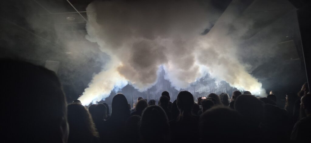 Greg Anderson и Stephen O’Malley излязоха по график на сцената, сред поредното цунами от пушек (тема по време на целия концерт) и, ами, амм… засвириха. Без паузи, почивки за вода, ослушвания за аплодисменти и игри за излизане за бис. Те просто се материализираха на сцената, издевателстваха над китарите си и изпълниха програмата си сред вълни и вълни от „облаци“, неотклонно и монтонно (ритуално?), поклониха се и се оттеглиха под аплодисментите на публиката.